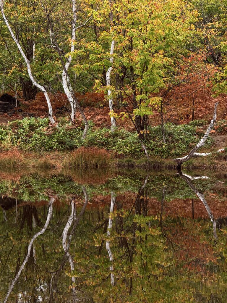 水面に溶ける錦の秋